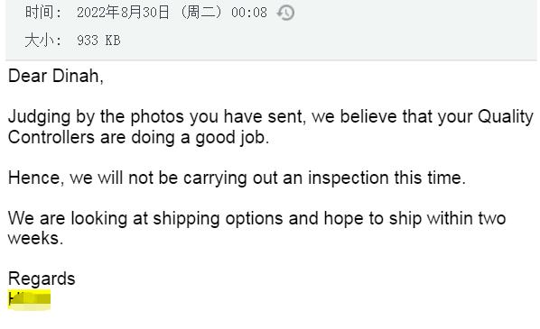 What a nice week ! Upon receiving client’s such feedback, we felt all our efforts were worthy. Thanks for client’s trust and praise, which is really the best rewords to us !