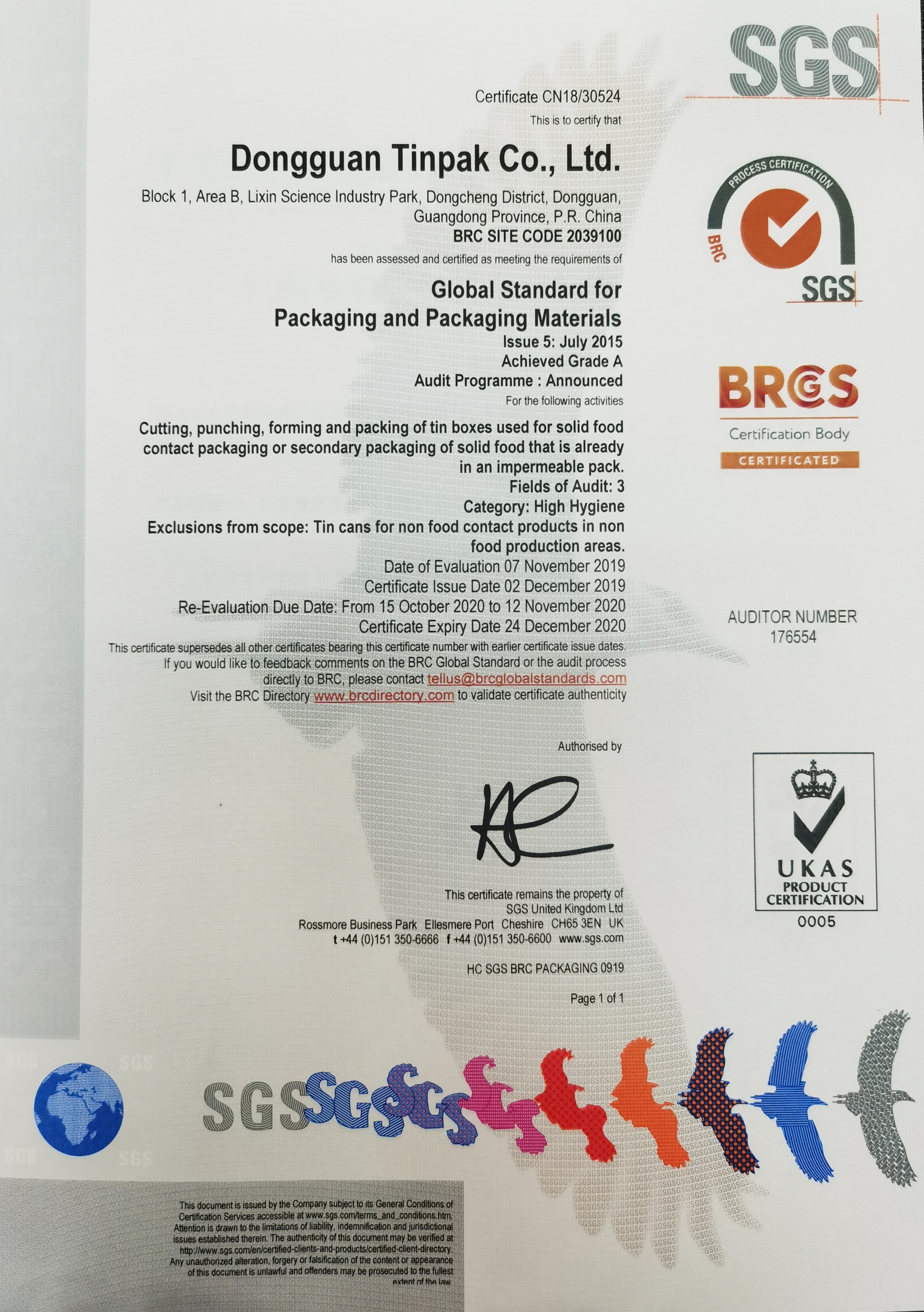 Tinpak devotes itself to providing tea packaging tin with premium quality. Tinpak installed 22 auto production lines for making food tin boxes. Our dust-free workplace ensures all tea tins are started from the tinplate sheet to the assembled boxes meet food grade standard. Tinpak guarantees safety of food packaging under BRC management.
