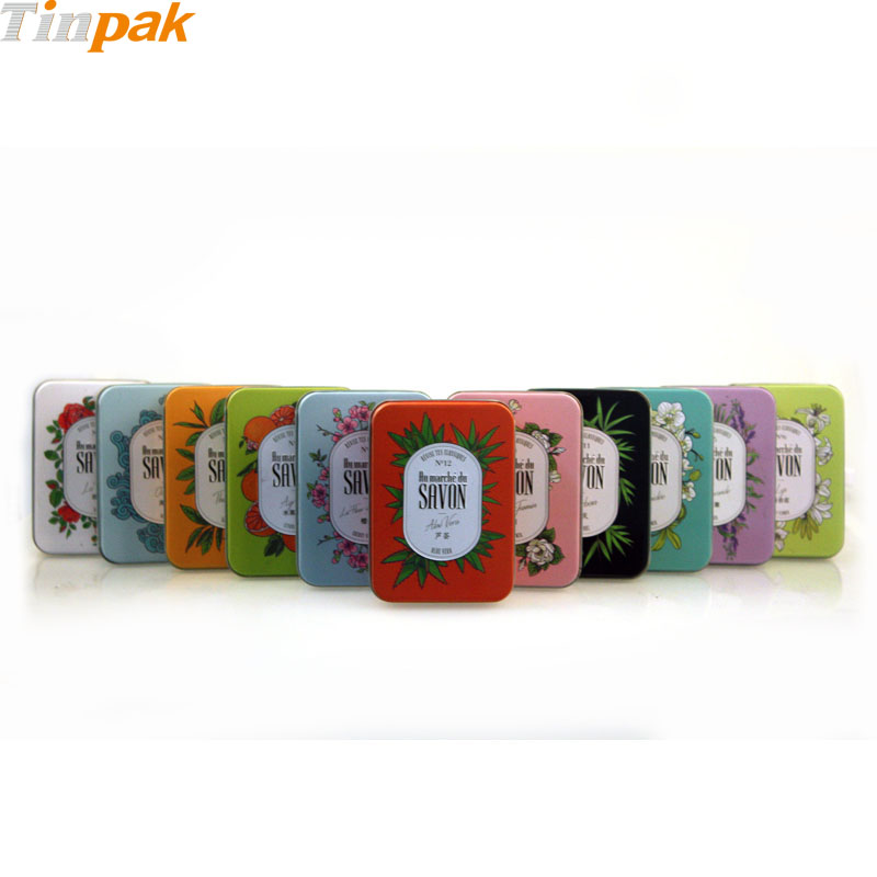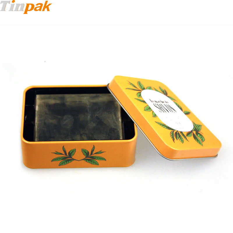 With elegant graphics printing, metal cosmetic container is the best metal packaging box which will help you to attract more customers and increase sales. This metal cosmetic container is in size of 4.10"x2.91"x1.42", perfect for soap packaging. Your ponseralized design is acceptable for the soap tins.
