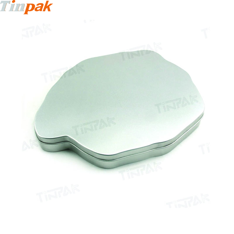 This map shape tin with lid comes with outward rolled lid which help consumer to hold lid easily when opening it, while inward rolled base which keep color of lid consistant.