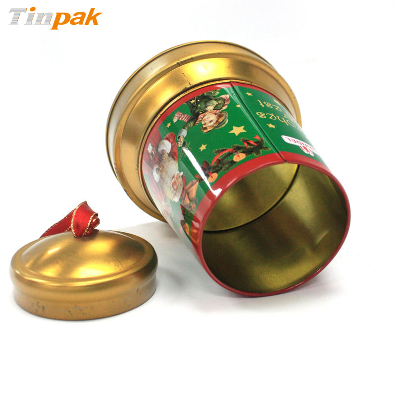 The lid with inward curl of the Christmas tin gift box is slip and domed. This adorable Christmas bell shaped tin gift box features charming vintage imagery of Santa. With the cord hanger, they can be hung.